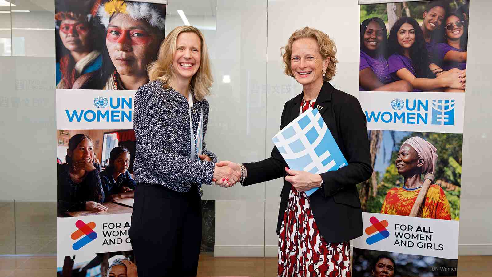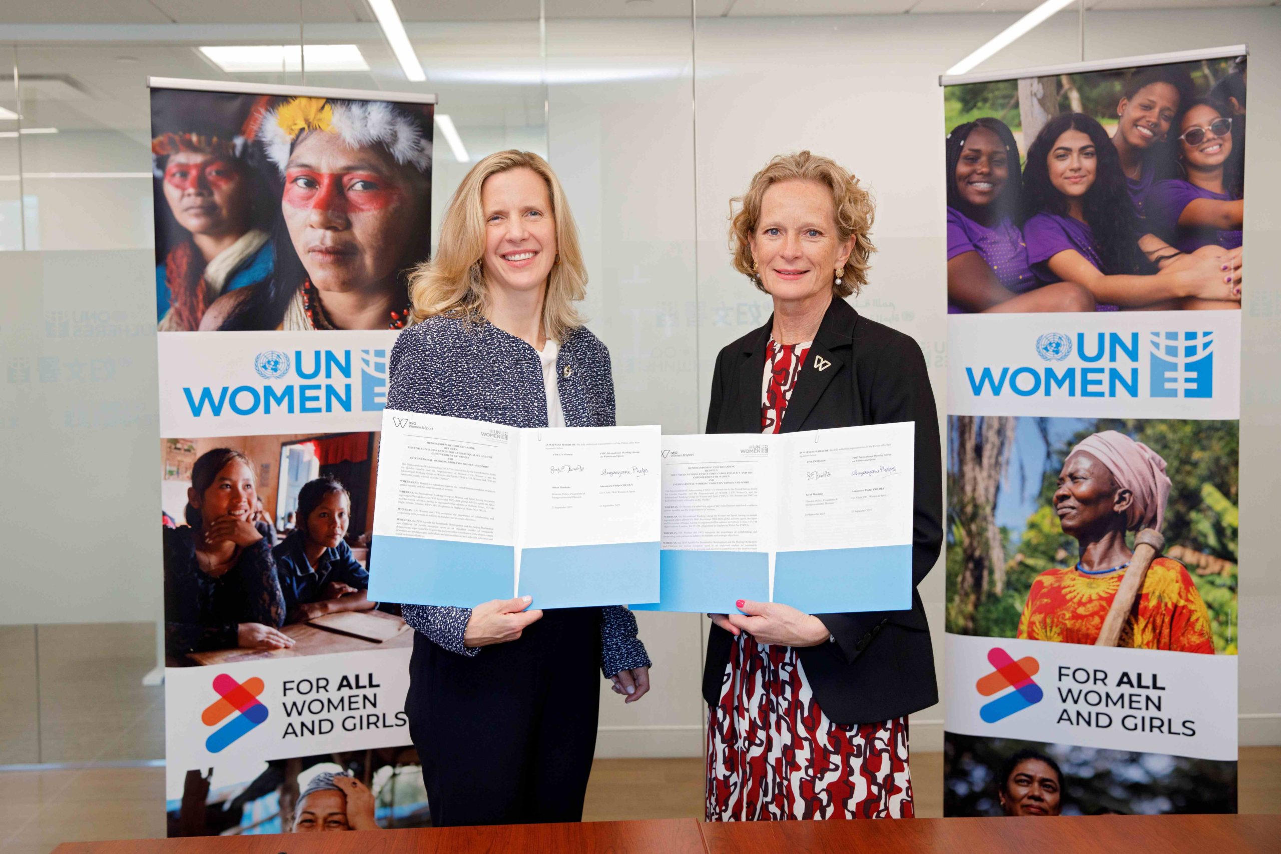 The MOU was signed in New York during the 80th UN General Assembly by Sarah Hendriks, Director of Policy, Programme and Intergovernmental Division at UN Women, and Annamarie Phelps CBE OLY, Chair of IWG.