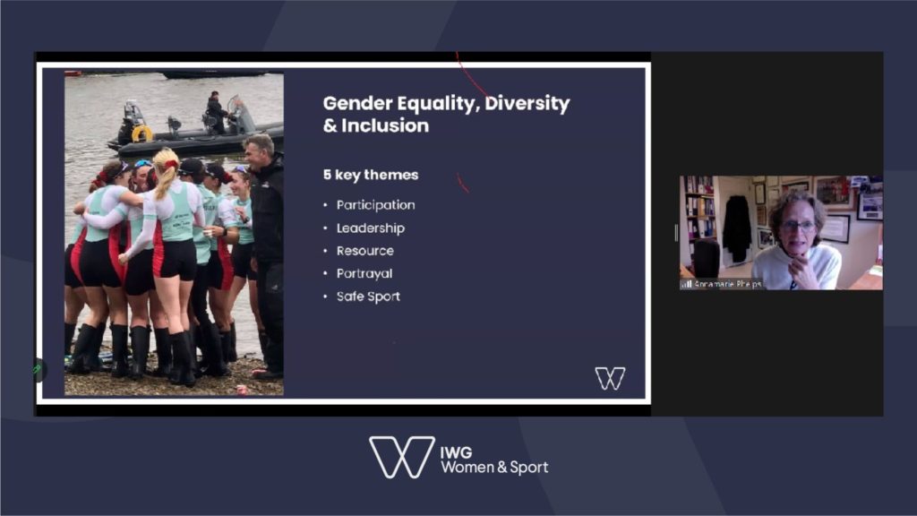 Annamarie Phelps CBE OLY, Chair of the IWG UK Secretariat, was invited to speak at FISU’s (International University Sports Federation) Gender Equality Webinar on Monday, presenting to attendees from their Gender Equality Committee, National and Continental University Sports Federations, and FISU Student Ambassadors.